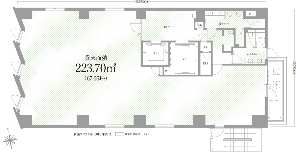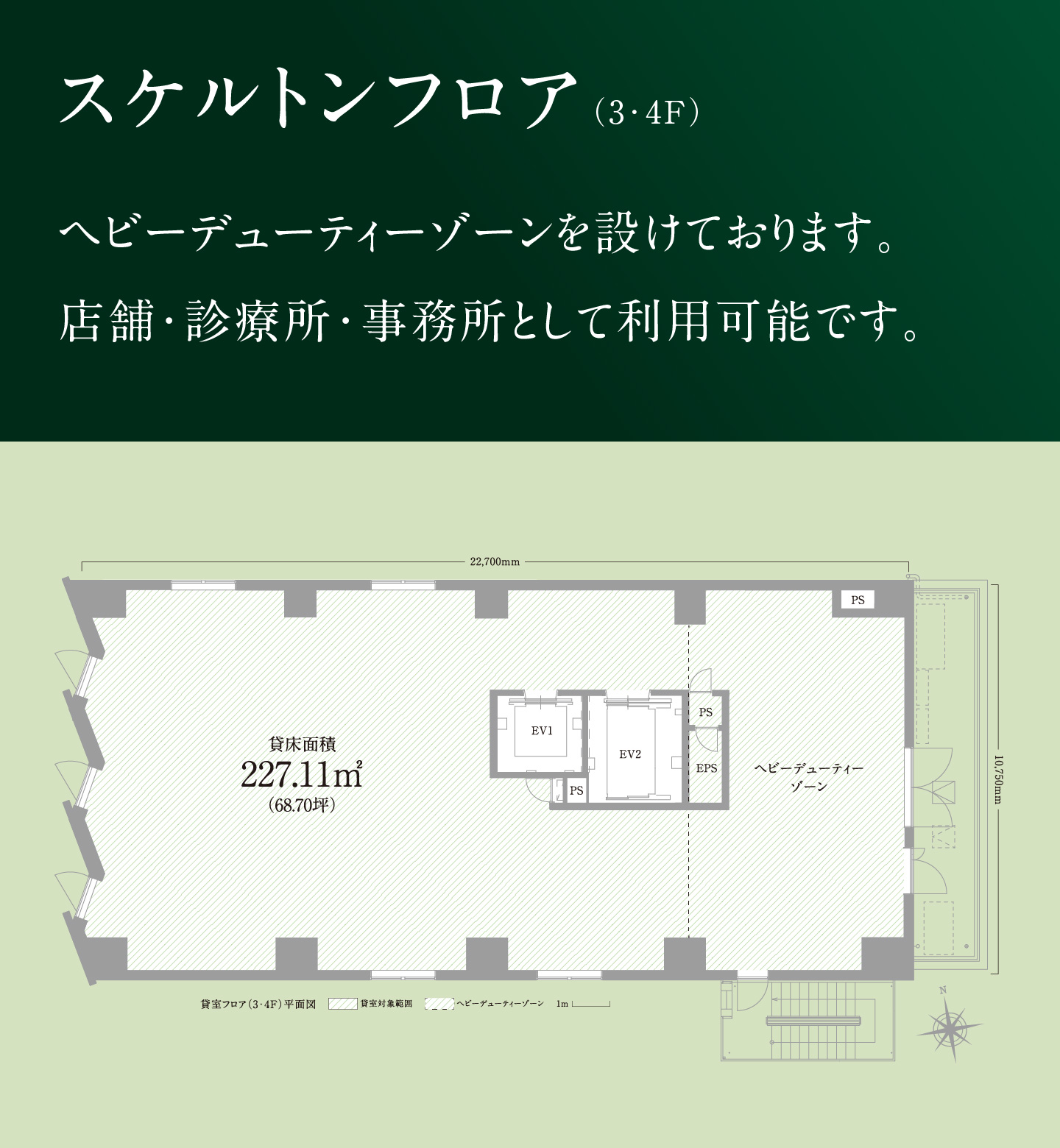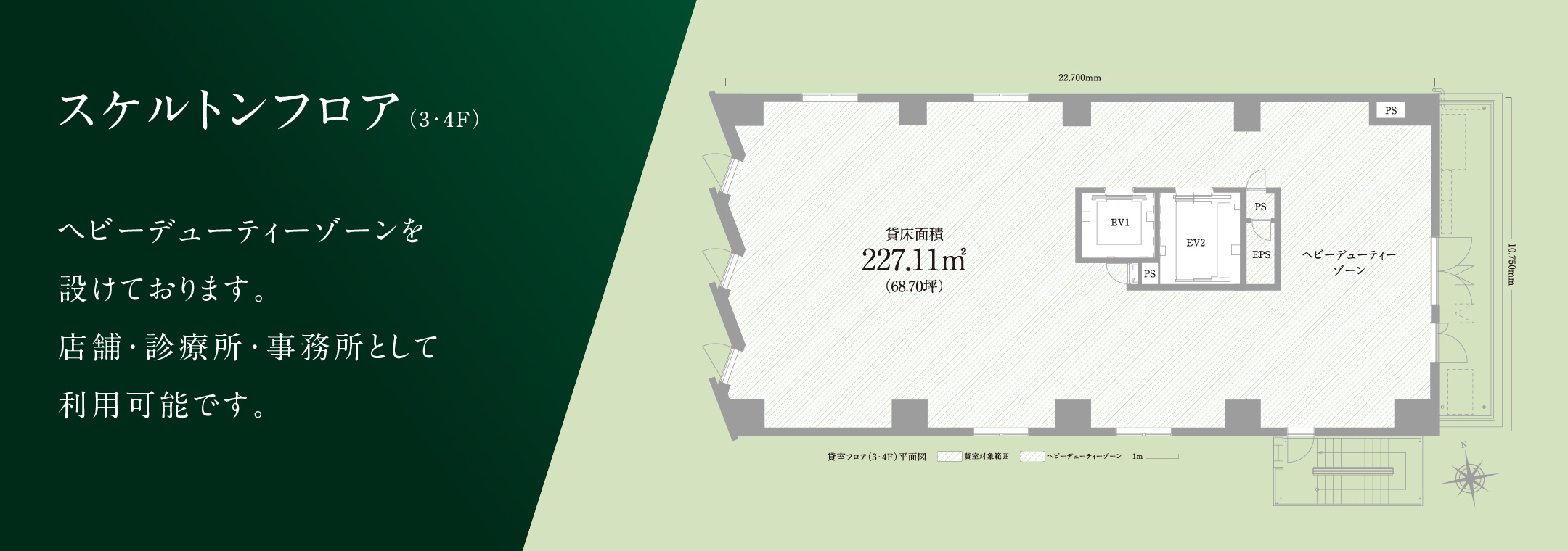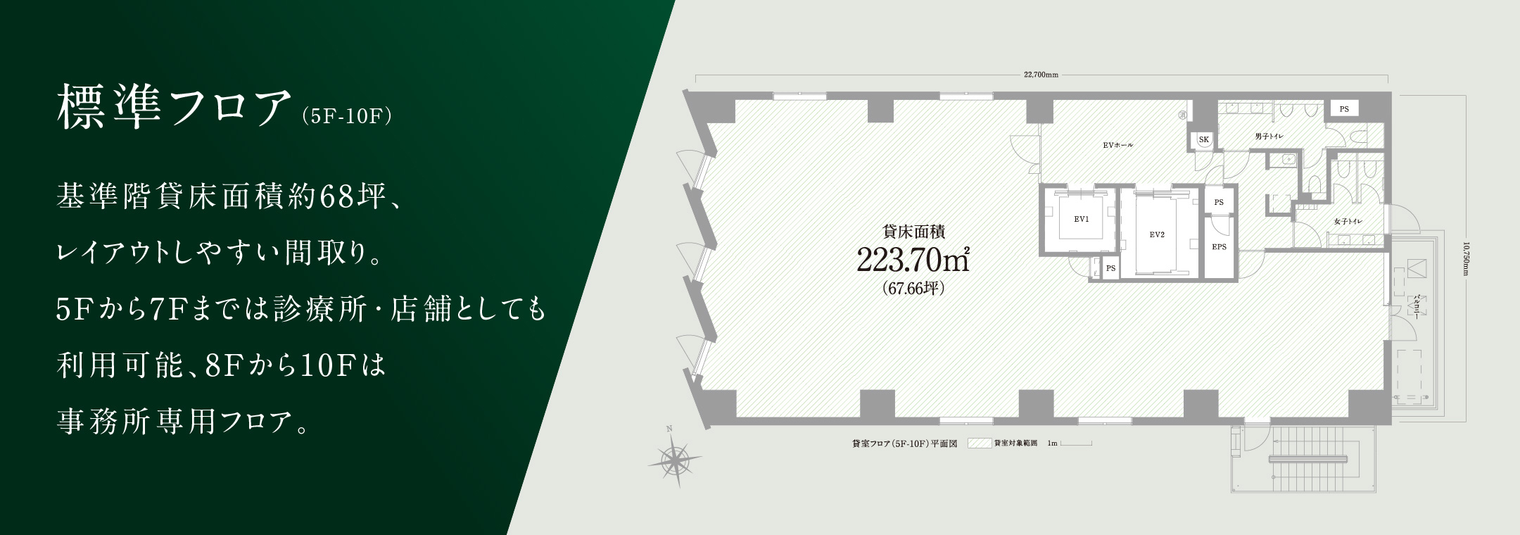 5Fから7Fまでは診療所・店舗としても利用可能、8Fから10Fは事務所専用フロア。