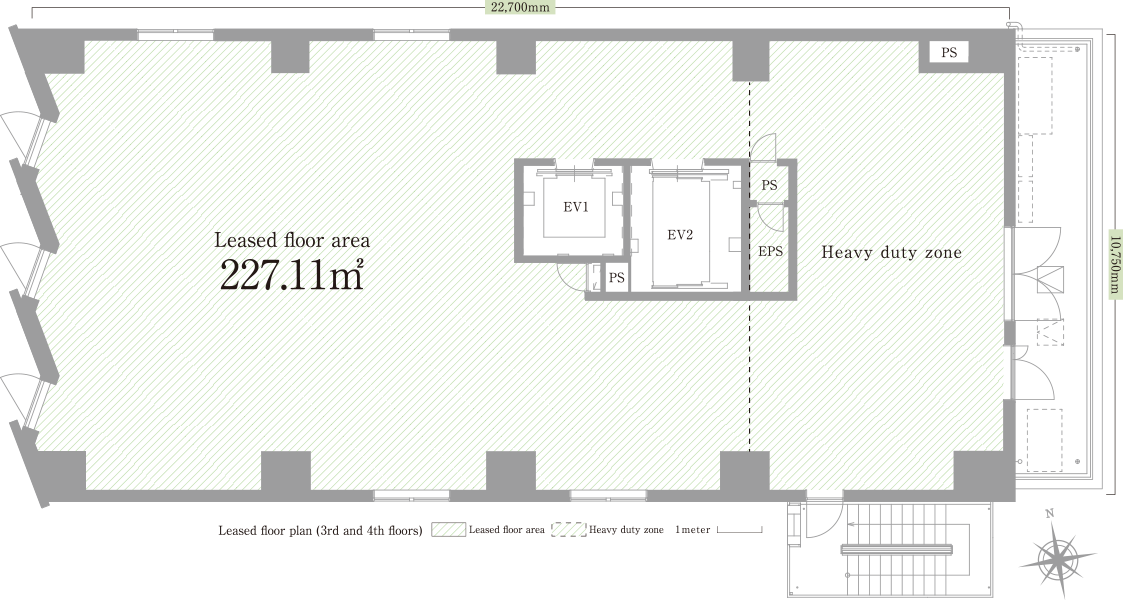 Leased floor area on standard floors is approximately 225㎡, with floor plans for easy layout. Floors 5 to 7 can be used for medical clinics, stores, etc. Floors 8 to 10 are for offices.