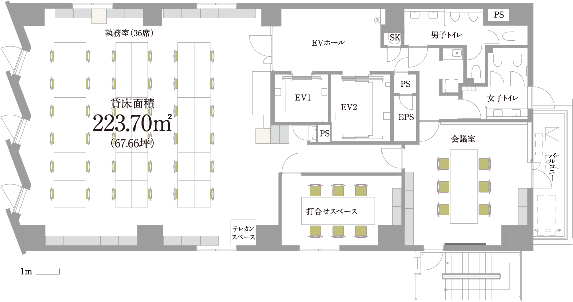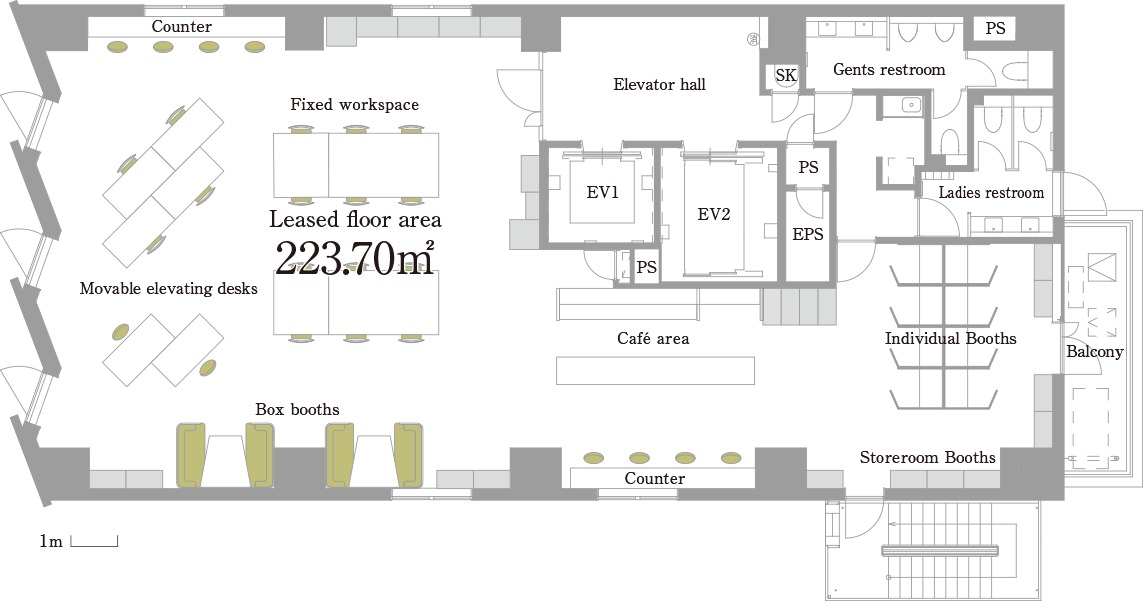 * This drawing is based on floor plans drafted at the planning stage, and the actual layout may differ slightly. The actual layout takes precedence. Various equipment, piping, materials, etc. have been omitted from the drawing or simplified. CG rendering of interiors is based on the assumption that tenants have prepared fixtures, etc., and have had interior finishing work done.